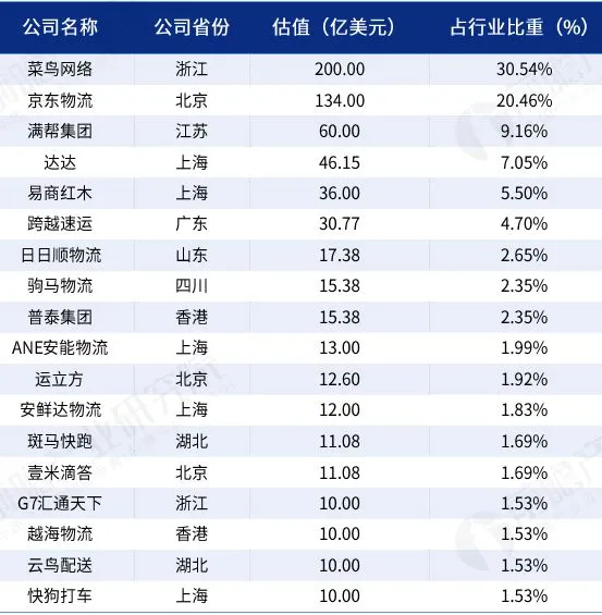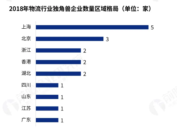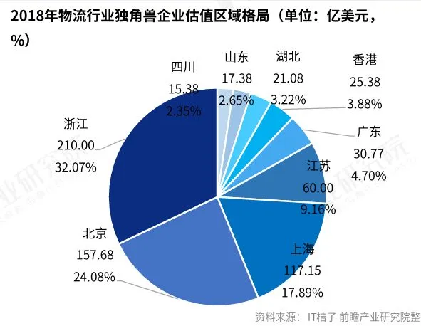 物流行业独角兽企业集中在上海、估值金额集中在浙江