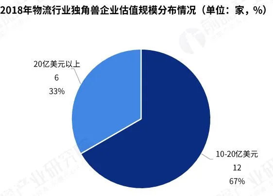 2018年、物流行业独角兽企业上榜18家、估值规模655亿美元;