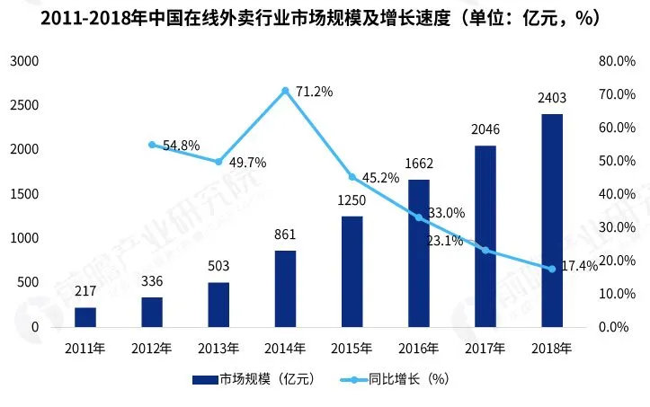 从本地生活细分领域来看,餐饮行业持续快速增长,特别是火锅等行业迅速崛起,2018年全年市场规模达到4.4万亿元。大体量的餐饮市场给外卖行业创造了机会。