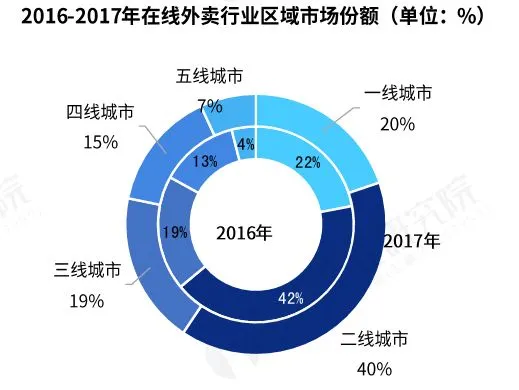 在快节奏的城市生活里,外卖渐渐成为了生活的“必需品”。现在的外卖不仅仅是提供送餐服务,还可以满足消费者生活方方面面的需求。目前我国的外卖行业已经步入稳定发展期。随着外卖订餐习惯的潜移默化,快餐外卖020市场对于餐饮市场的渗透率也会逐渐达到80%以上。外卖行业发展至今,一线城市竞争激烈,面临着一波又一波的品牌更换,市场基本饱和。随着外卖的渗透速度的加快,从一二线转移到新一线、三四线,从市中心转移到城郊区,外卖市场的整体下沉趋势会更加明显。