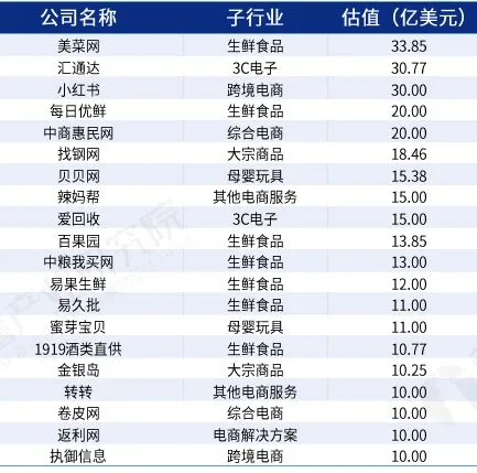 从估值规模范围看,10-20亿美元的电子商务独角兽占据行业主流地位,有12家,占比67%;估值在20亿美元以上的独角兽数量有6家,占比33%。其中菜鸟网络估值高达200亿美元,远超行业内其他独角兽企业。