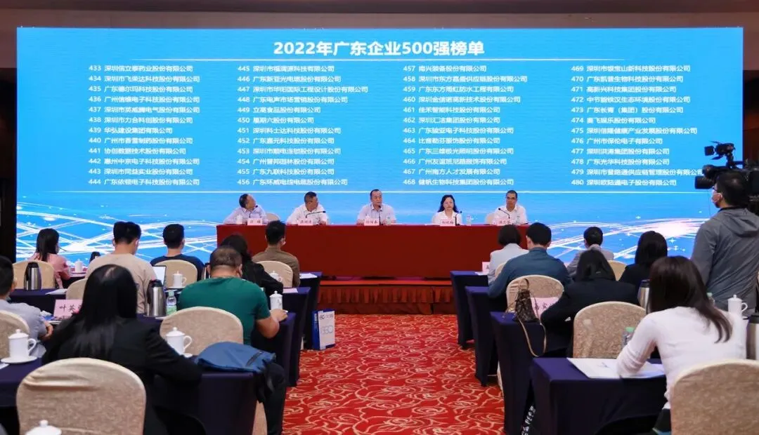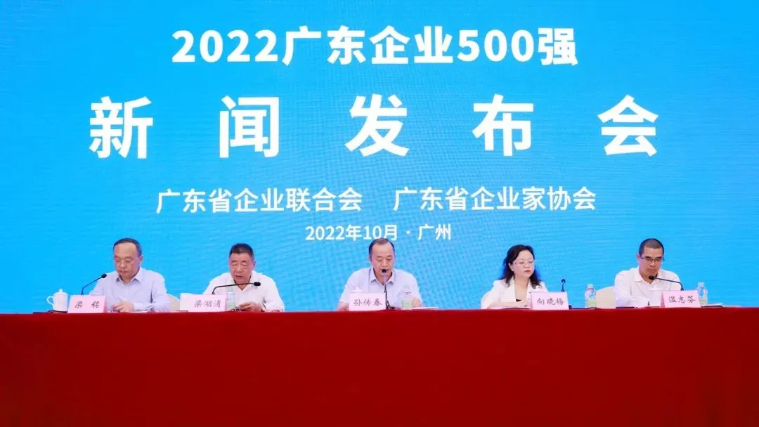 2022年10月12日上午,广东省企业联合会、广东省企业家协会在广州举办2022广东企业500强研究新闻发布会,正式向社会发布《2022广东500强企业发展报告》,同时发布了“2022广东企业500强”“广东民营企业100强”“广东制造业企业100强”“广东服务业企业100强”榜单。发布会以“争创一流企业,聚力广东发展”为主题,通过线上线下相结合的方式进行发布。广东省企业联合会、企业家协会党支部书记、专职常务副会长孙传春发布《2022广东500强企业发展报告》及榜单 ,简要介绍了广东省企联开展“广东企业500强”研究工作的有关情况,对“广东企业500强”彰显的新特征、面临的新挑战进行了分析并提出了应对意见。广东省社会科学院党组成员、副院长向晓梅对《2022广东企业500强发展报告》进行了解读。会议由广东省企联秘书长梁铭主持,500强企业代表广州市建筑集团党委书记、董事长梁湖清、温氏食品集团股份有限公司董事长温志芬在会上作出了发言,中央驻粤媒体、广东省直媒体、网络媒体等相关媒体记者参加会议。