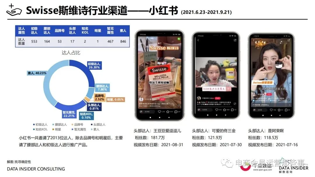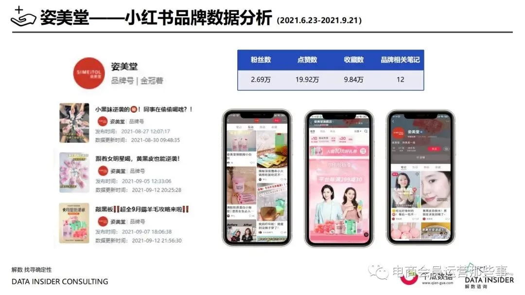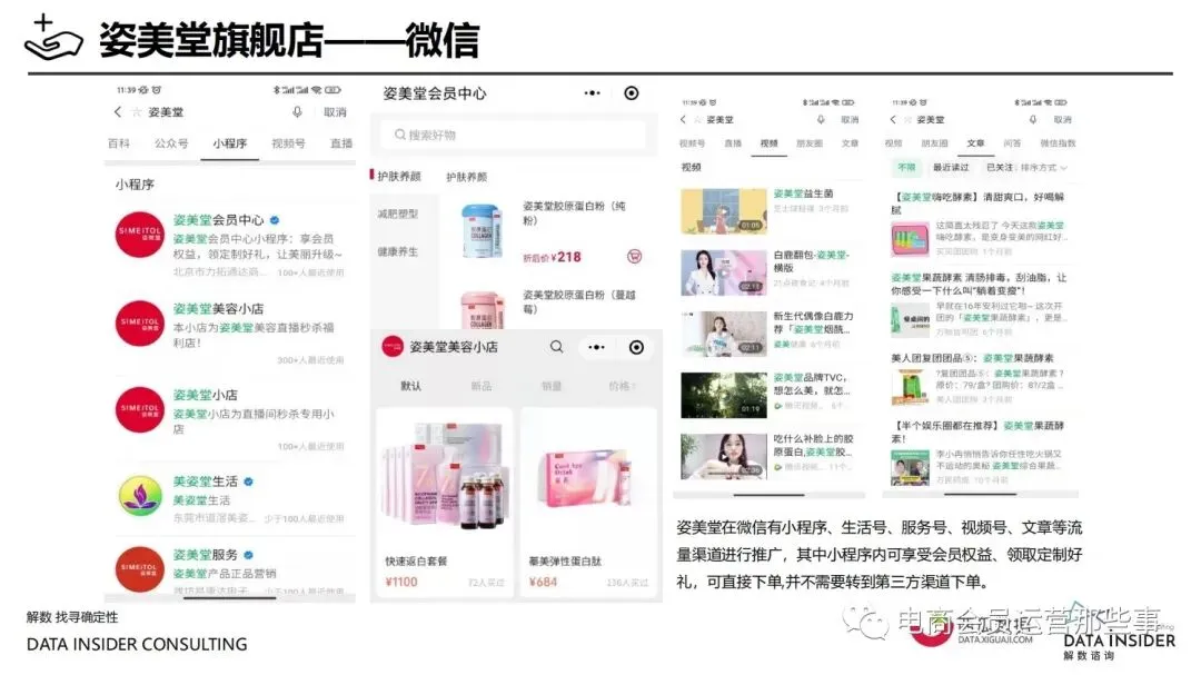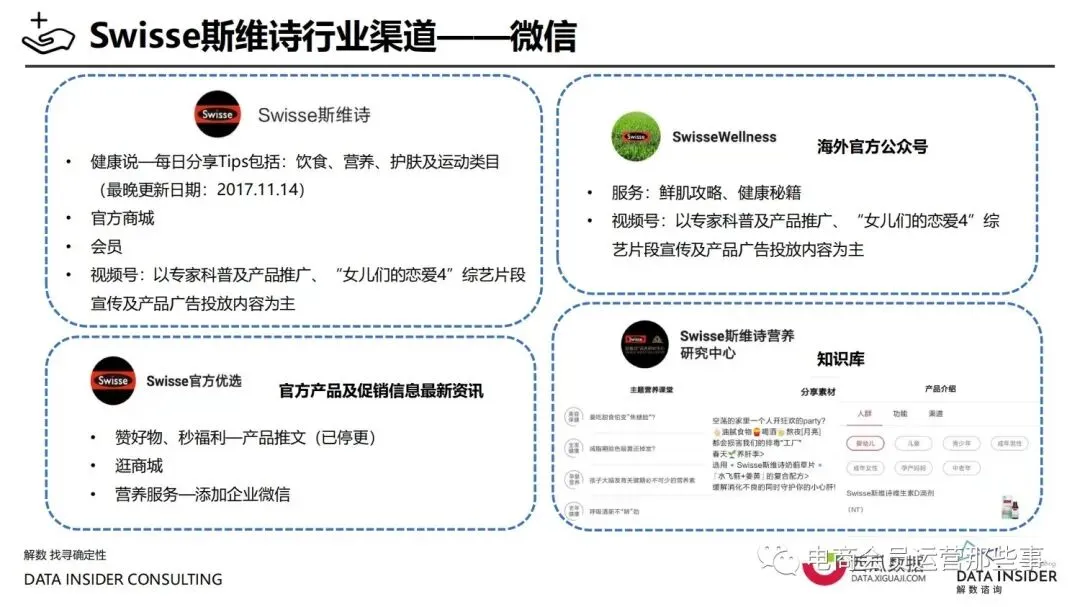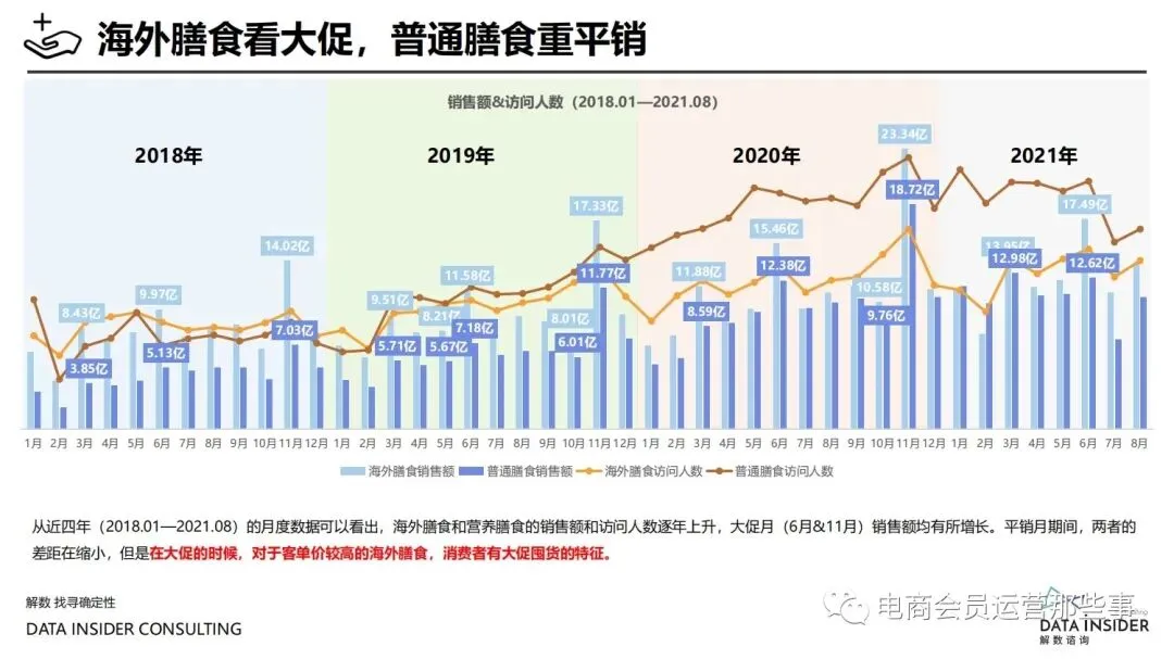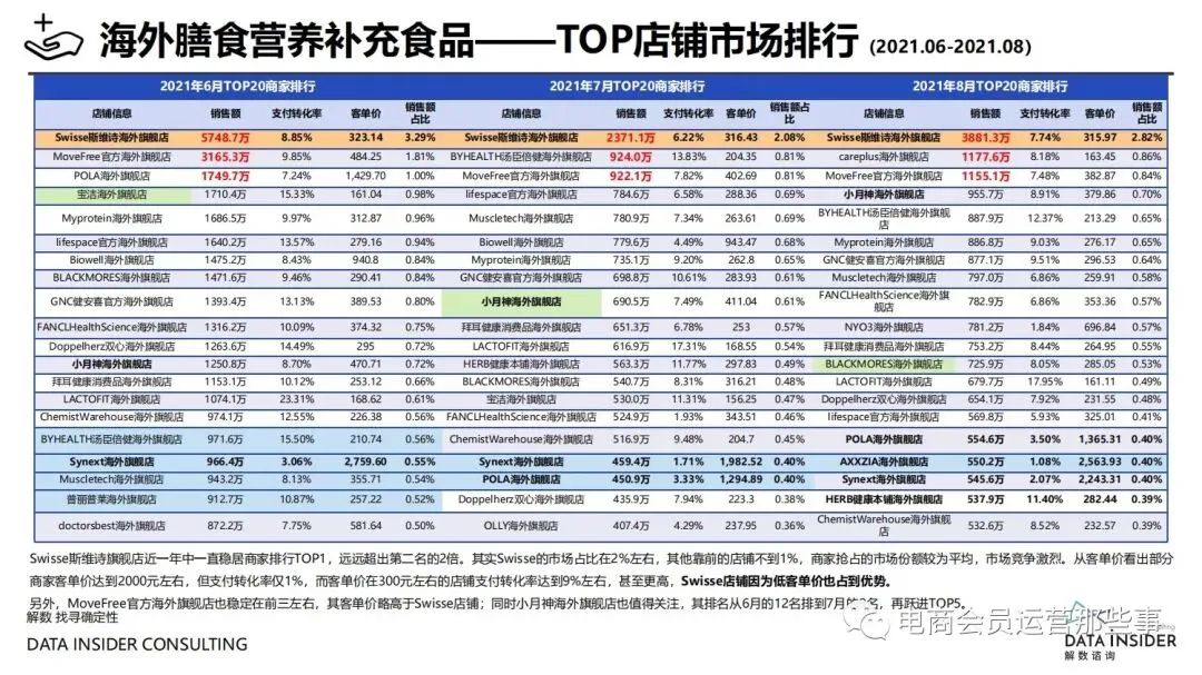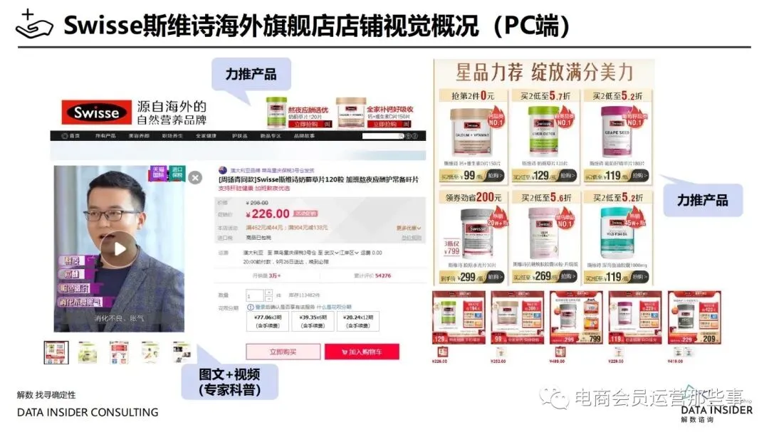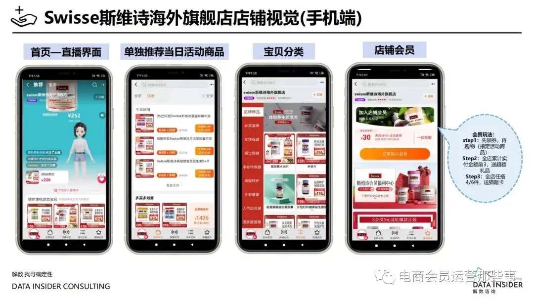 保健品常见有四种分类:保健食品、保健用品、保健化妆品、保健药品。其中,保健食品是指声称具有保健功能或者以补充维生素、矿 物质等营养物质为目的,含有特定功能成分,适宜于特定人群食用,有规定食用量的食品,在国际上一般称为膳食补充产品。• 2020年相较于2013年,保健品市场规模翻了2.5倍(从993亿元增长至2503亿元),值得关注的是青年市场也随之翻了2.35倍(从298 亿元增长至701亿元)。同时,老龄化也成为了社会关注的热点话题,2020年我国65岁及以上的人口达到了1.91亿人,增速达到了近十 年的最高值7.91%。保健品行业作为老年群体的刚性需求,市场规模已经超过了1500亿元。 • 常见的保健品销售渠道及模式有:传统店铺营销、直销、会销、电商、微信营销。我们着重来探讨的就是保健品的电商营销板块。在整 个电商版图中,传统电商平台完成了保健品电商销售60%的份额,且多数品牌均取得健康食品标识的蓝帽子认证;代购占了电商保健品 的24%份额,主要经营海外品牌;跨境电商占保健品16%份额,有海外品牌背书的直营平台。• 随着全民健康意识的不断增长和中国消费者对营养“精细化”、“高阶化”的需求,膳食补充行业近几年不断地蓬勃发展。资本纷纷涌 入市场抢占份额。根据公开报道整理出的2021年保健品融资情况,KOOYO、Nelo、BUFFX等功能性食品新锐品牌在1年内进行多轮融 资,抢占年轻保健品市场;而汤臣倍健、东阿阿胶、江中集团等老牌保健品企业也展开创新,推出了如红枣蛋白粉、胶原蛋白饮等功能 性食品。 -----领取完整报告PDF源文件-----