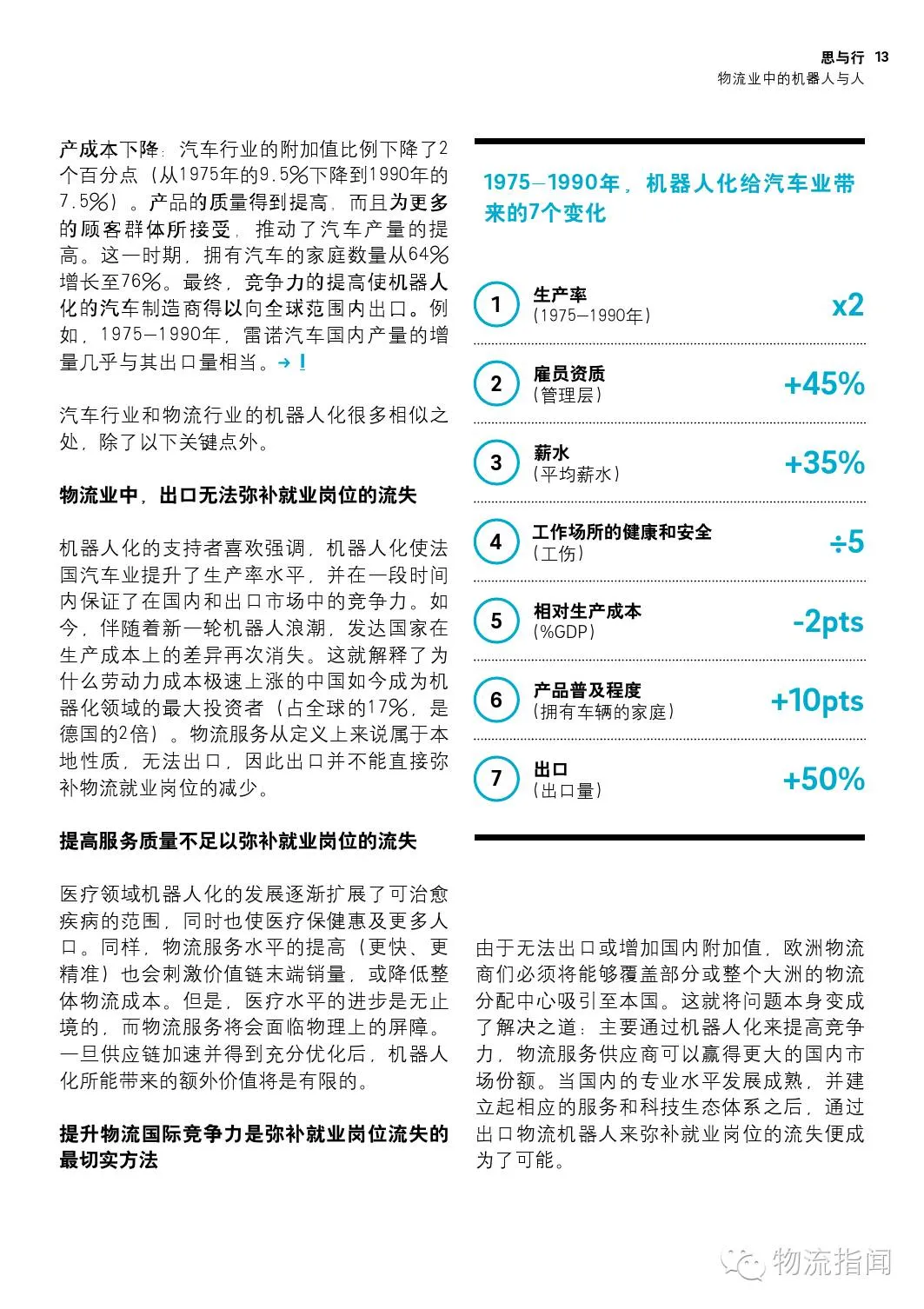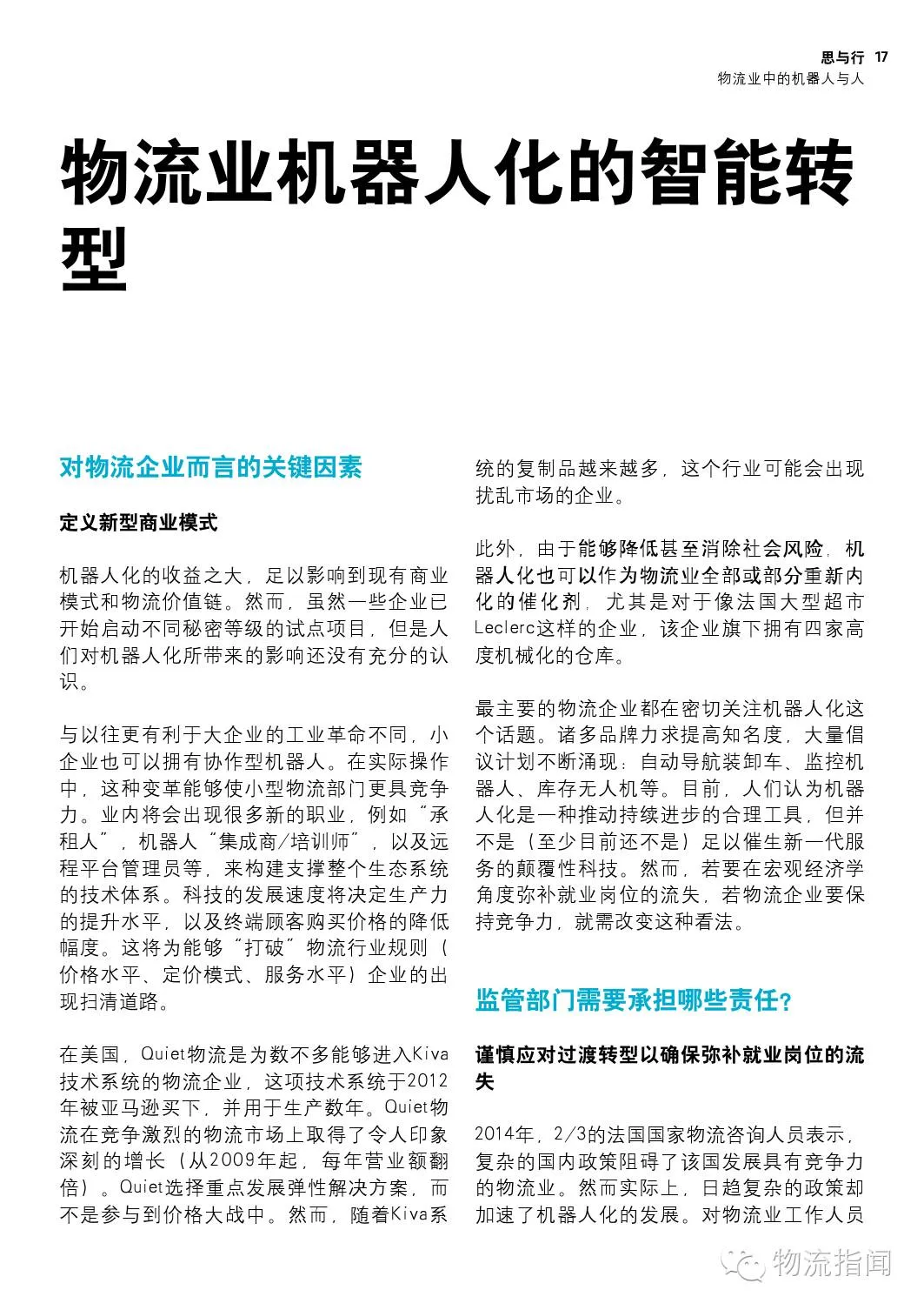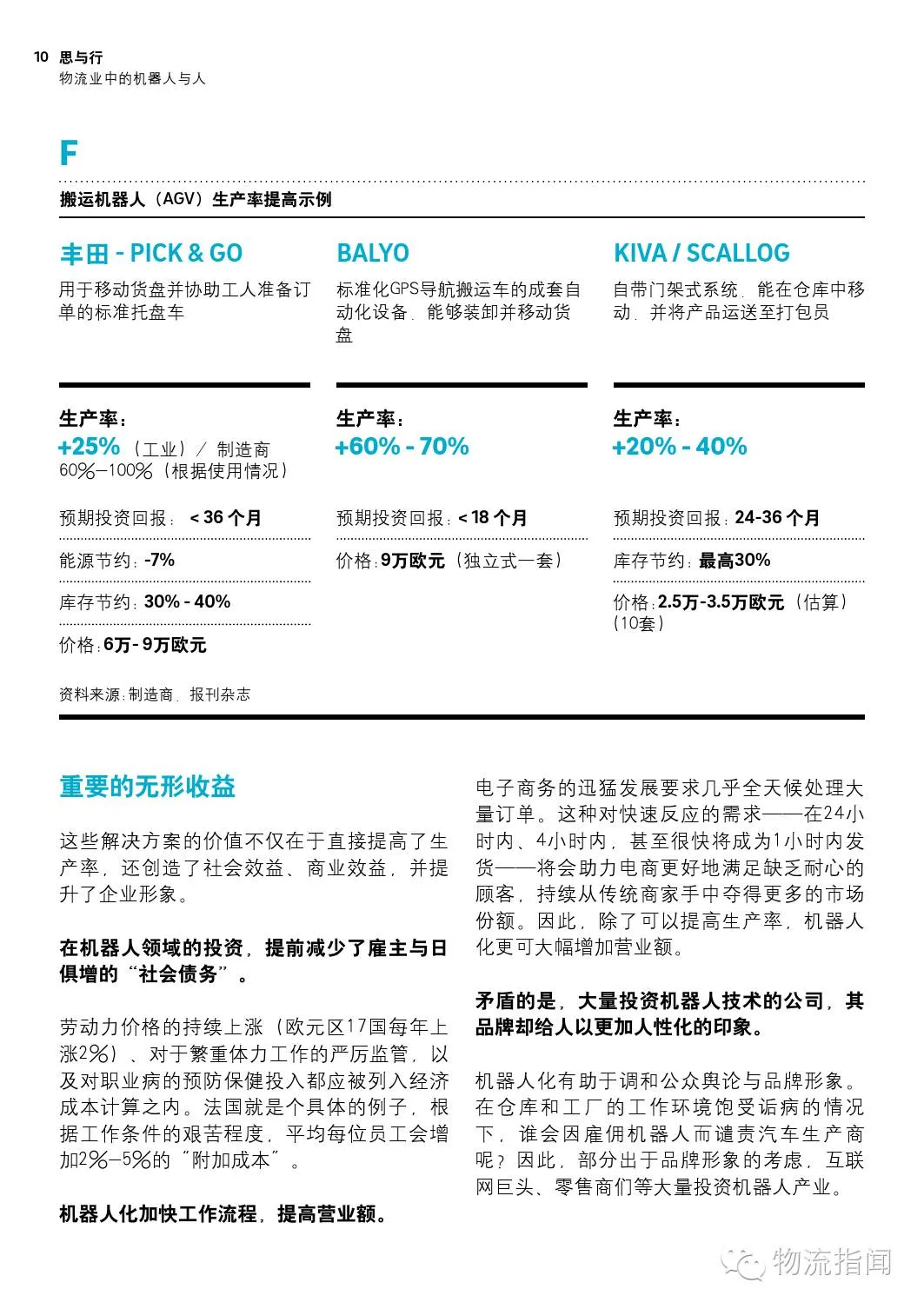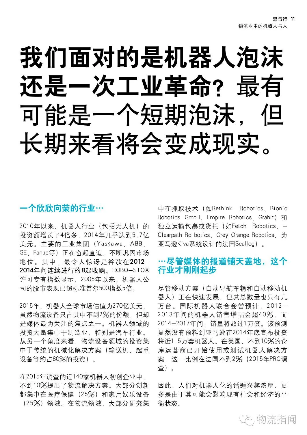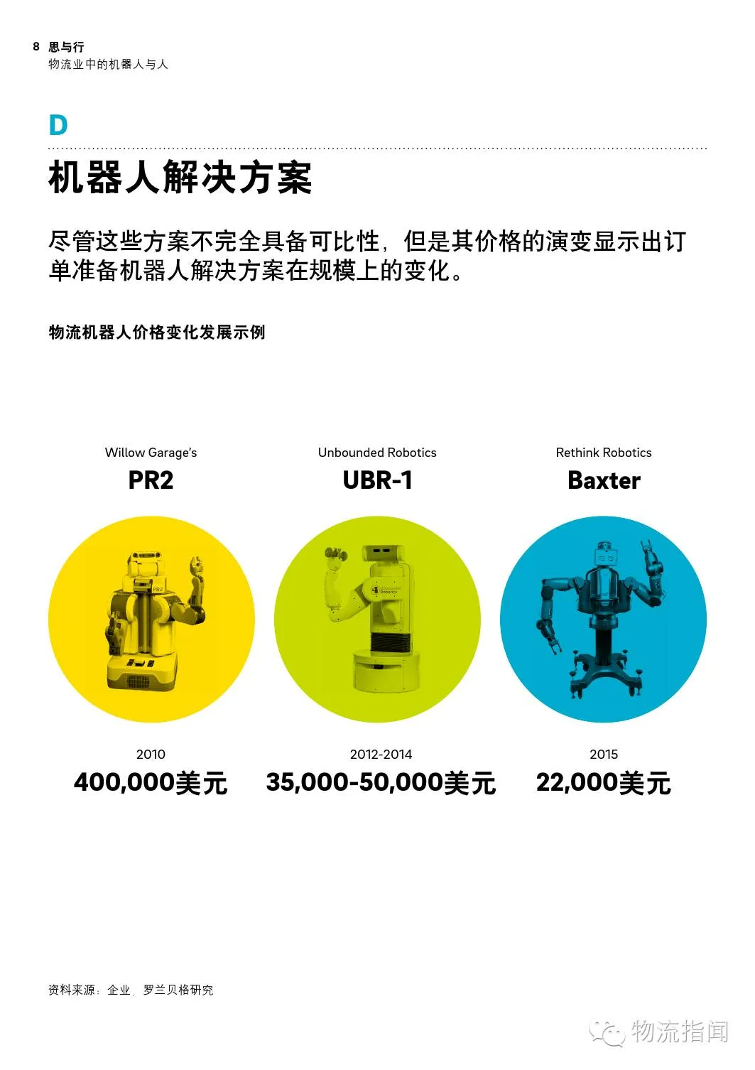 罗兰贝格近日发布报告《物流业中的机器人与人》,分析了物流业大量引进机器人所带来的影响,物流业如何做好准备并在新形势下提高竞争力。报告指出,机器人生产效率的提高、寿命的延长与成本的下降等因素将会促进机器人在物流业中的使用。若无任何过渡性准备,预计物流机器人将在未来十年内取代欧元区150万个工作岗位。