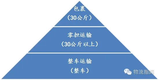 第三方物流公司按装车货物区分可以分为包裹快递企业(30公斤以下),零担物流(30公斤到吨位级),整车物流(货物可装满一车)。整车物流是将同一类货物运往同一目的地,零担和快递物流则是将不同类货物运往不同地点的运送模式。