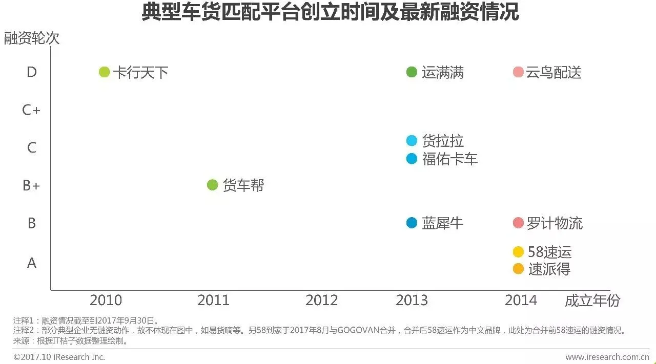 车货匹配市场从2016年初开始到今年9月之间,融资数量超过20次,但大部分集中在A轮及以前阶段,且融资金额较小。目前,少数企业在融资能力上开始逐渐拉开差距,平台的技术研发能力、运力基础、体验、诚信保障、以及可延展的业务及盈利空间,均是资本关注的重点。