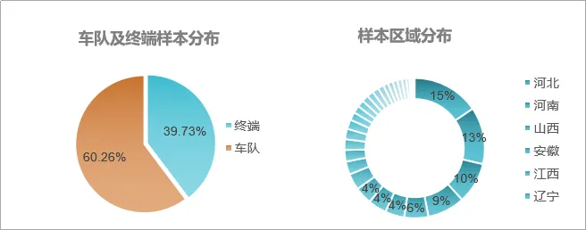 5月29日,一汽金融对商用车客户展开关于物流运输行业运行现状的调研,此次调研累计收回5461份业内人士的反馈,涉及30个省级行政区。来自于终端运营客户的样本为2170份,占比39.73%;车队客户样本为3291份,占比60.26。河北、河南、山西、安徽、江西5个省份,累计占比52%;占比不足2%的区域有12个,累计占比11%,其他省份累计占比37%。