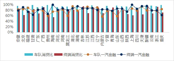 调研数据显示,商用车客户整体贷款意识比较高,各省份选择进行融资的客户占比基本都在70%以上;选择贷款的客户中,除个别省份外,选择一汽金融的比例均较高,基本都在75%以上;从客户群体来看,车队客户整体融资意识要高于终端客户,各区省份选择进行贷款的客户比例都在90%以上。