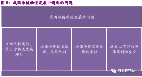 目前,我国尚未形成完整独立的冷链物流体系,大约 90%的肉类、 80%的水产品、大量的牛奶和豆制品基本上还是在没有冷链保证的情况下运销。另一方面,冷链物流的发展还仅仅停留在运输与冷藏环节,运用先进信息技术的冷链物流管理体系还明显不足,很多运输过程还采用棉被、塑料苫盖等“土保温”的方法,技术装备相对落后。虽然冷冻食品产销冷链情况稍好,但由于部分产品流入集贸市场拆零散卖,冷链出现了中断现象。