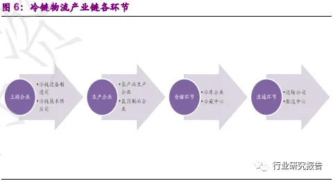 相较于普通物流,冷链物流的成本要高出 40%~60%。产业链条可以划分为上游的冷链设备制造商和冷链技术供应商,农产品、医药等生产企业以及中下游的仓储环节和流通环节。其中仓储和运输的要求较高,大大增加了冷链物流的成本,同时也降低了产品的损耗率。