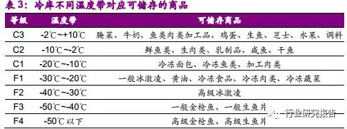 成熟的冷链体系有严格的温度带标准,以日本为例,按照《日本冷库法》的规定,可以分为七个等级的温度带。不同商品适用于不同的温度带,温度越低对设备和技术的要求越高。
