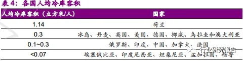 而由于中国人口众多,作为世界第一大人口国,冷库的拥有率水平低于大部分可比国家,人均冷库容积在0.1~0.3之间。而荷兰自2014年以来成为城市居民人均冷库占有量最高的国家,近年来基本稳定在1.144立方米/人。