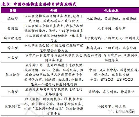 国内冷链服务提供商主要有8种商业模式,分别是运输型、仓储型、城市配送性、综合型、交易型、供应链型、电商型和物联网+型。而目前该市场的竞争者可以分为四大类,分别为由传统物流企业转型、生产商自建自营的冷链部门、专业冷链服务商、国外冷链巨头联手国内企业设立的合资企业。