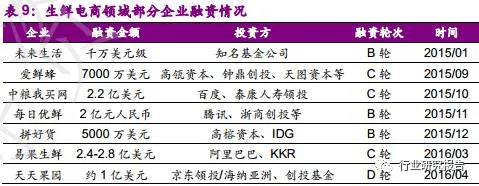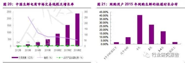 同时,生鲜电商被看做电商领域的最后一片蓝海,吸引众多创业者进入市场。与此同死,不少巨头纷纷布局生鲜电商,阿里投资易果生鲜、百度投资中粮我买网、腾讯投资每日优鲜,生鲜电商成BAT角逐的又一领域。资本寒冬时期,2015 年下半年中粮我买网、爱鲜蜂、拼好货接连受到资本青睐,近日又有易果生鲜获得高额融资。生鲜电商在一级资本市场的繁荣带动了整个产业的高速发展,未来各家在商业模式上的差异将加剧行业的洗牌,催生出新的巨头企业。