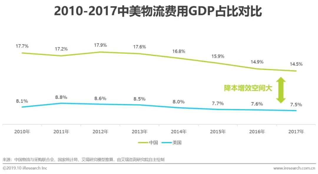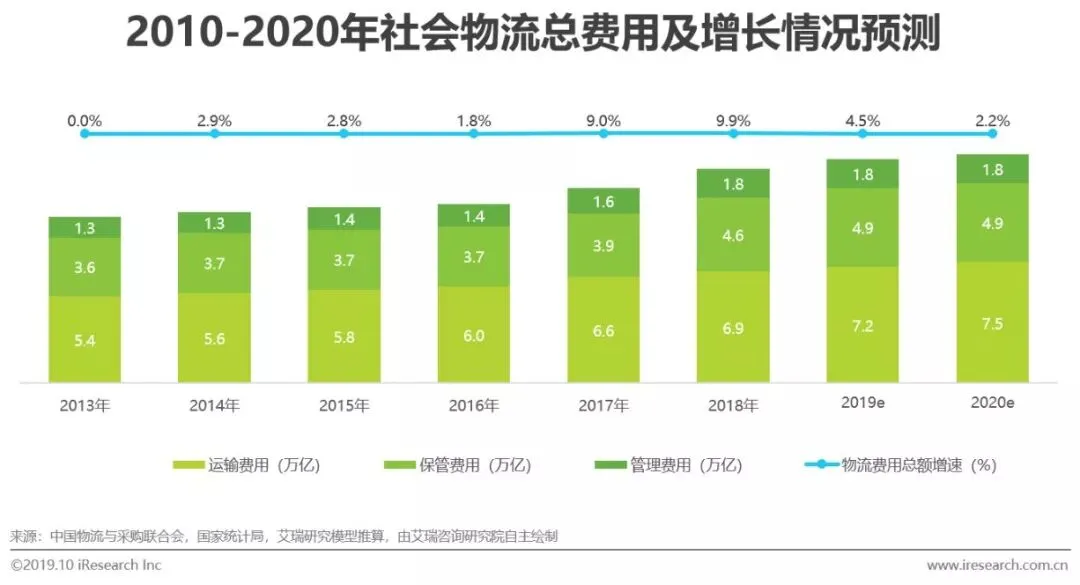 物流行业整体市场规模自2013年起突破10万亿以来,连续6年保持在十万亿的规模体量。一方面得益于消费领域的增长,另一方面源于行业得细分和下沉,头部企业寻找到更多的产业机会和商业模式。同时,行业增速将趋缓,未来5年难再出现爆发式的增长。对比国外物流发展规律,中国物流市场也将进入精耕细作的运营时代,降本增效和效率创新将成为物流领域的重要命题。