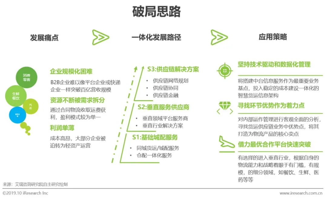 B端业务本身就要求企业拥有综合服务能力,在企业资源如运输、仓储、信息系统等方面有资产投入需求,企业也应借势而行集中目标,延伸擅长领域的供应链,形成垂直行业的进入壁垒,打造自身成为专业领域的专业供应链方案解决商。在战略执行层面需关注技术能力搭建、自身供应链优势以及适配的平台或行业这三个维度。