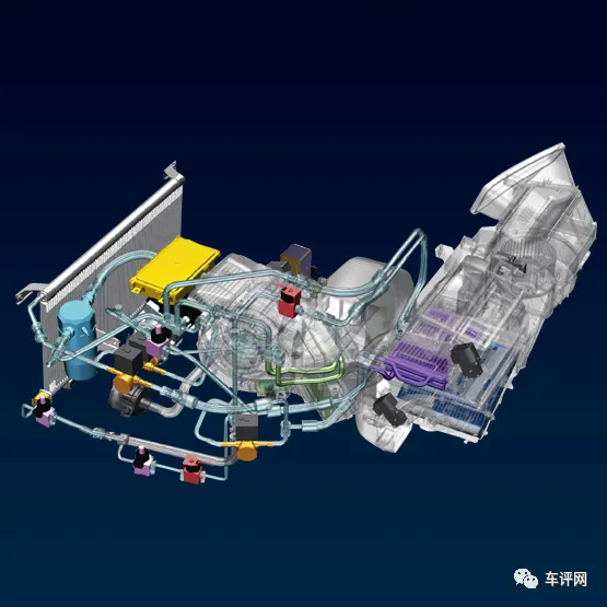 新能源汽车的新增系统,通过冷水机组,电子水泵,水冷板等零部件实现监控和控制电池温度;