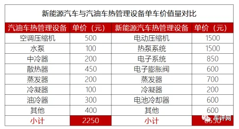 新能源汽车的热管理设备和汽油车相比,单车价值量高了4000元左右。