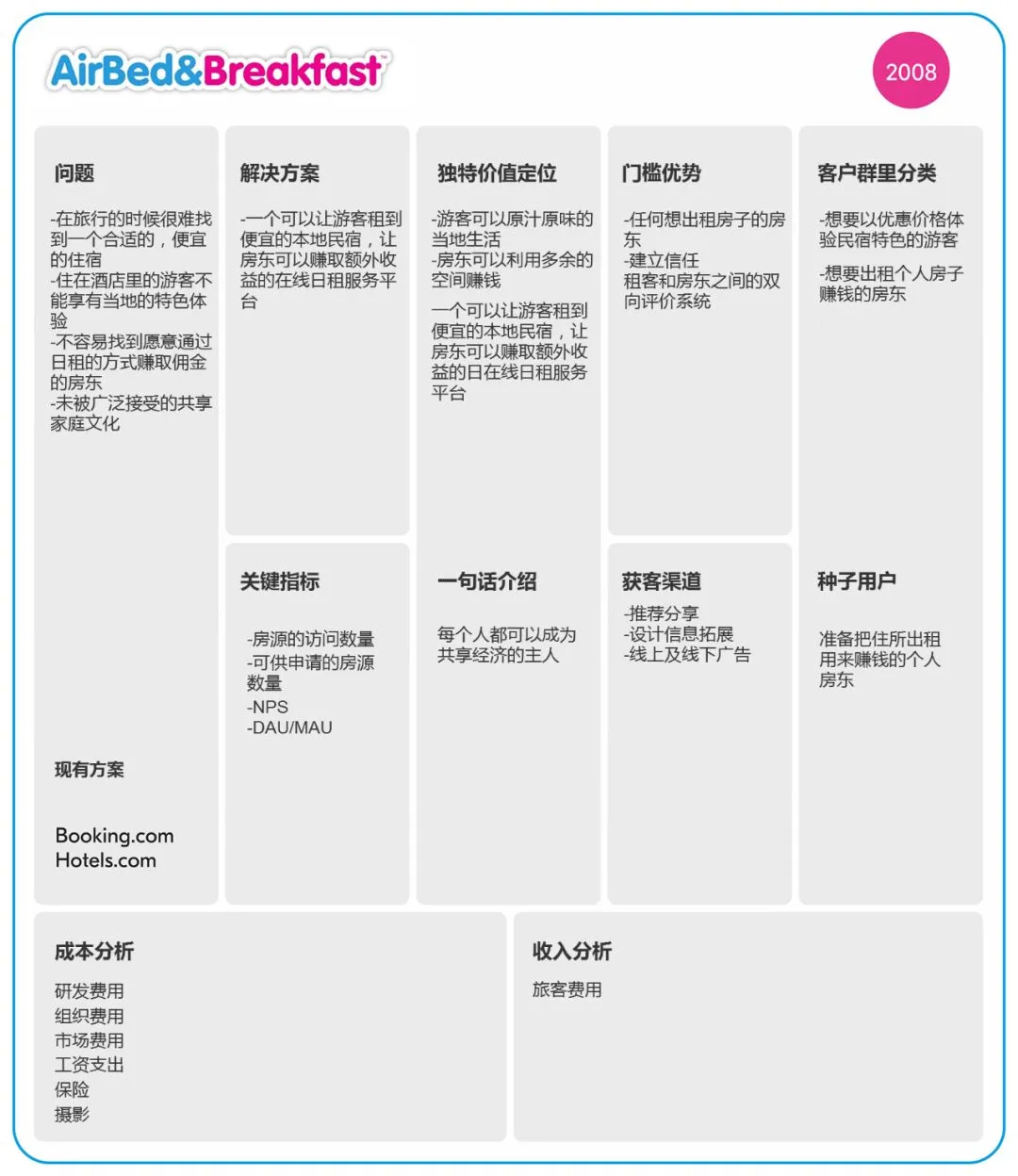 Airbnb创业精益画布