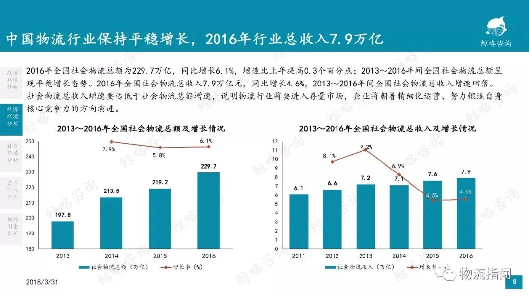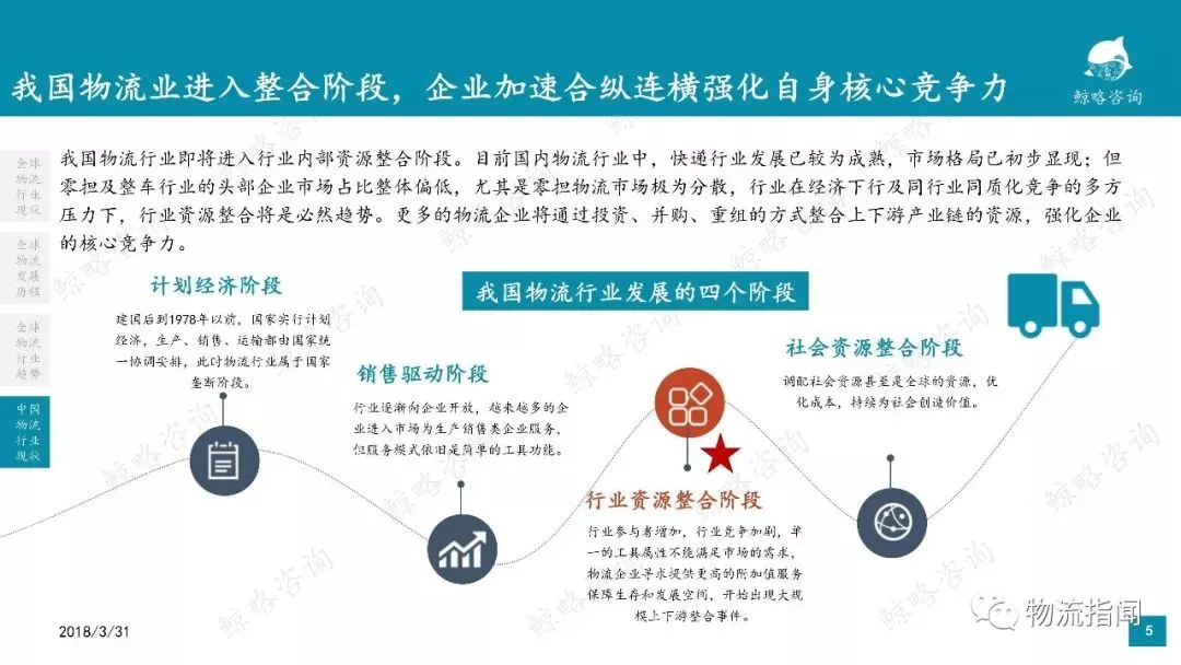 我国物流行业即将进入行业内部资源整合阶段。尤其是零担物流市场极为分散,行业在经济下行及同行业同质化竞争的多方压力下,行业资源整合将是必然趋势。