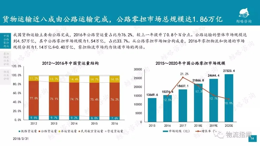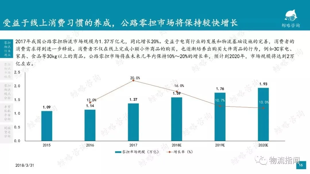 1.受益于线上消费习惯的养成,公路零担市场将保持较快增长