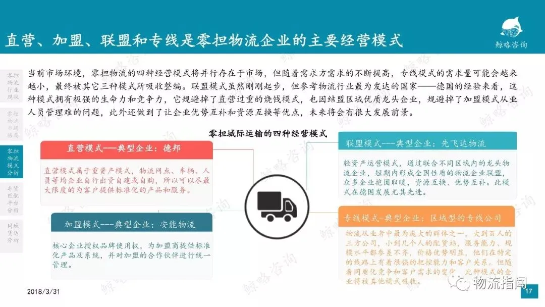 2.直营、加盟、联盟和专线是零担物流企业的主要经营模式