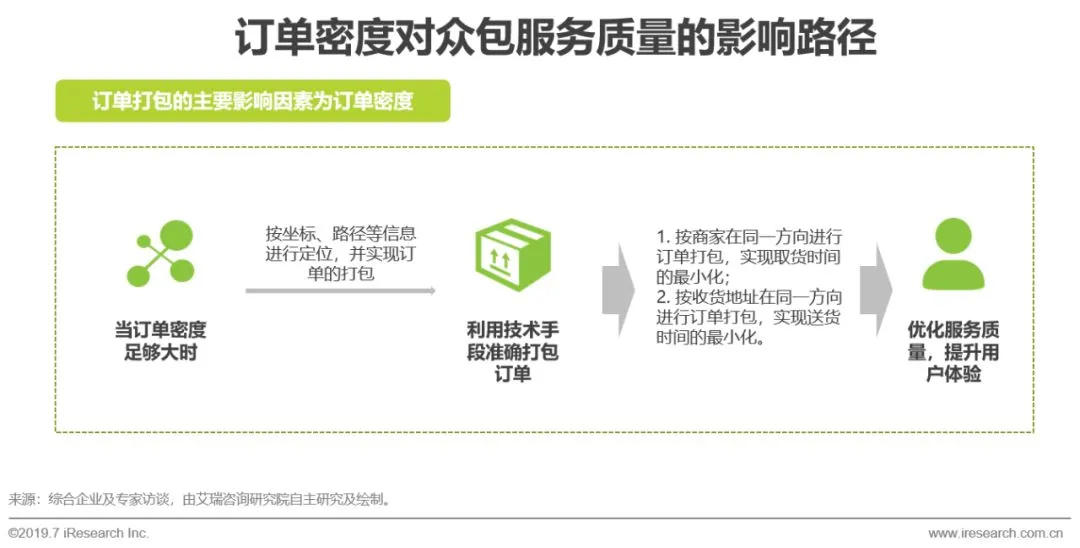 在众包模式下,当订单池达到一定密度时,系统根据订单的配送路径、坐标、商品品类等多种信息源将相近取货商家的订单或相近配送地址的订单打包在一起,最大程度减少配送员取货或者送货的时间。