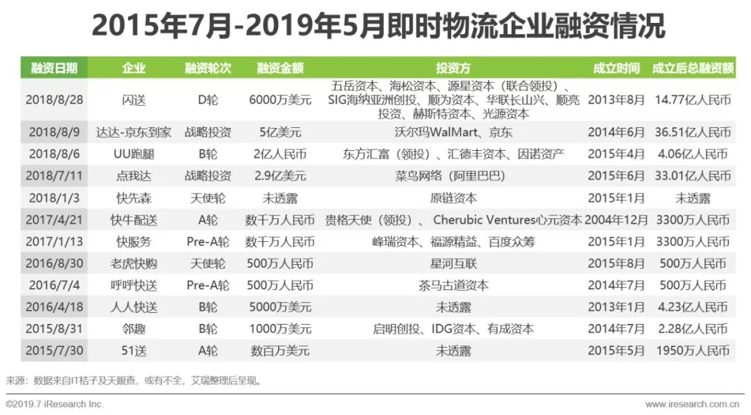 近几年即时物流企业频繁获投,但从2019年以来,投融资节奏明显放缓,主要原因在于随着即时物流行业的发展,投资市场开始更加谨慎地去做出每一个决定。因此如何向市场证明即时物流行业未来的发展潜力以及如何规划企业自身未来的发展方向和道路,成为即时物流企业眼下需要去努力的。但从另一个维度来看,几家头部企业的融资轮次和融资金额均比较可观,这也印证着即时物流这个行业的潜力确实是被市场认可的。