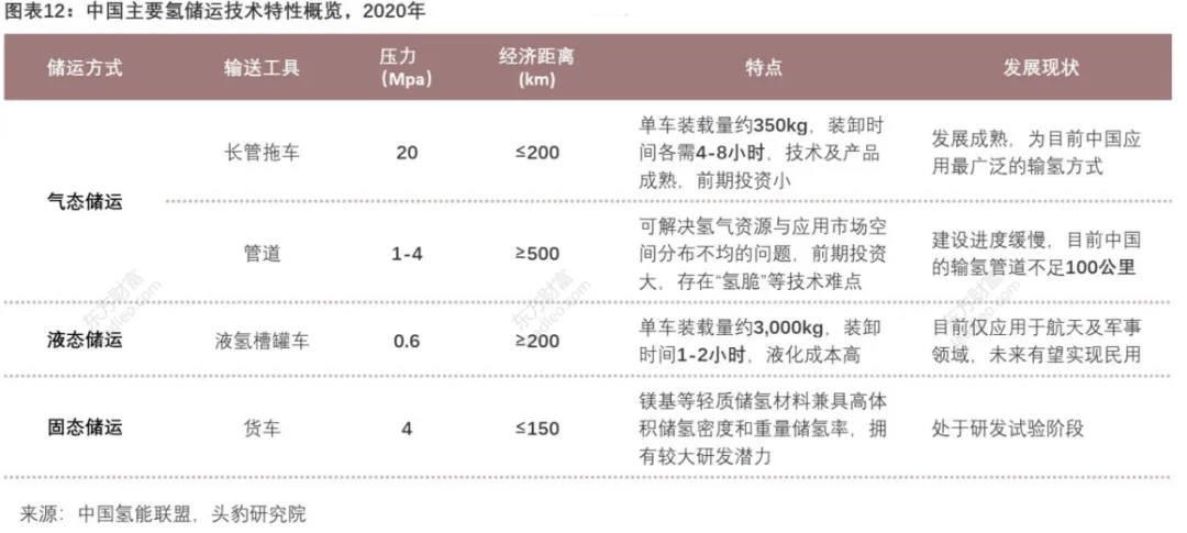 氢储运主要分为气态储运、液态储运、固态储运三种方式,其中气态储运主要分为长管拖车和管道运输,液态储运依靠槽罐车运输,固态储运仍处于研发试验阶段。