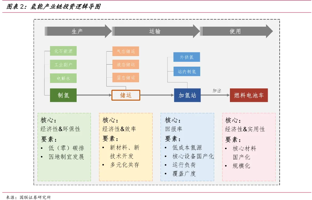 2.加强氢燃料产业链的建设,针对绿氢制备,氢能存储,运输等环节,进行整体布局。虽然时间周期较长,但氢燃料汽车也将伴随产业链的反正持续升级,氢能的应用比例会随着时间逐步增加。