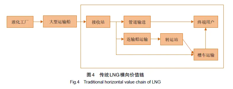 与LNG罐箱价值链平行的传统LNG价值链,作为横向价值链。传统横向LNG价值链的组织形式(见图4):