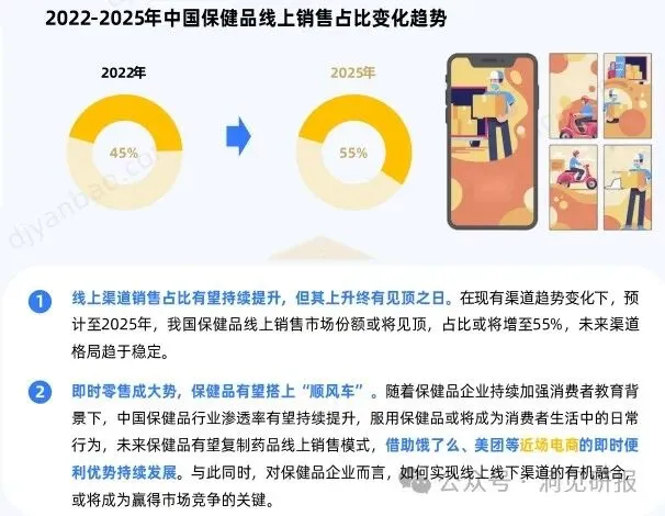 同时,电商渠道崛起新兴和近场电商逐渐占据一定市场份额。这一系列发展趋势为保健品行业注入了新的活力,为消费者提供更多元化、便捷的选择。