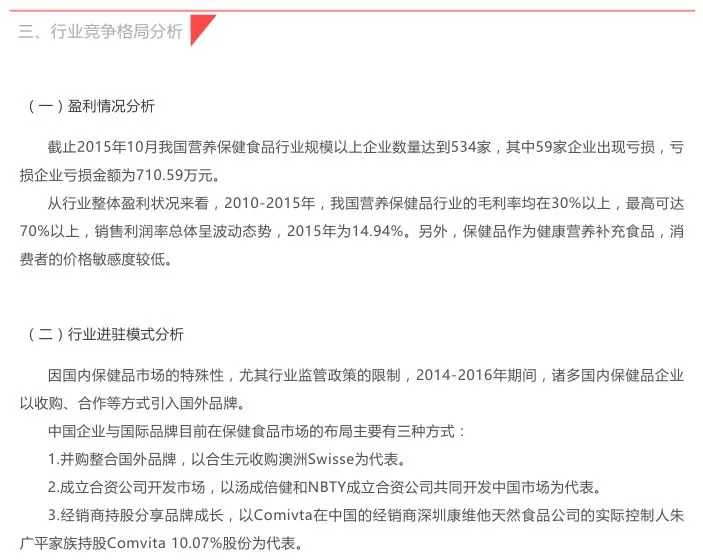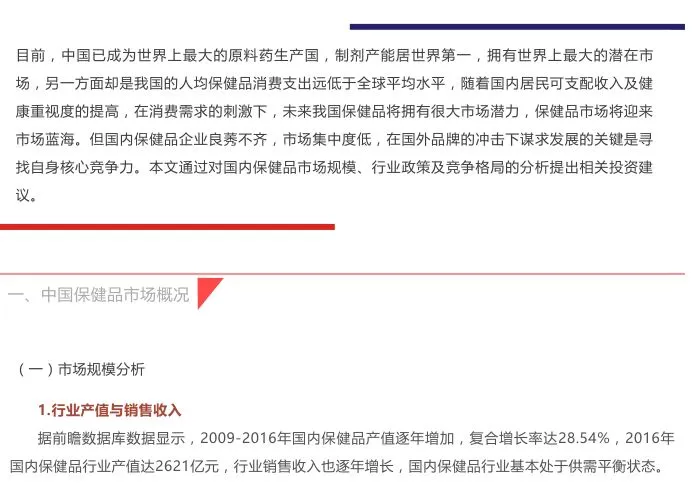 【关注】保健品行业分析报告