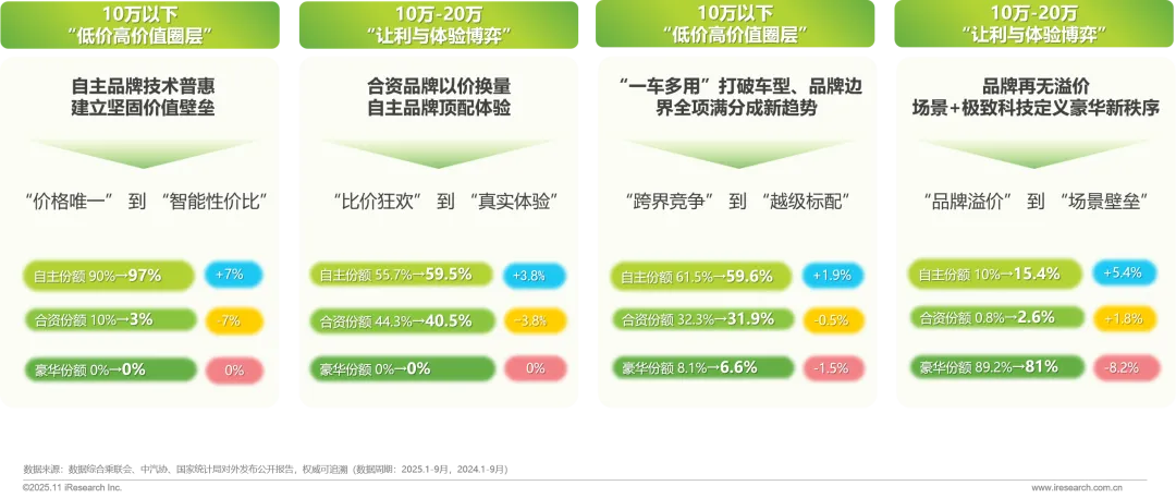 2025年各价格区间呈现完全独立的价值决策圈层,从品牌经营向车型价格圈经营成行业新趋势