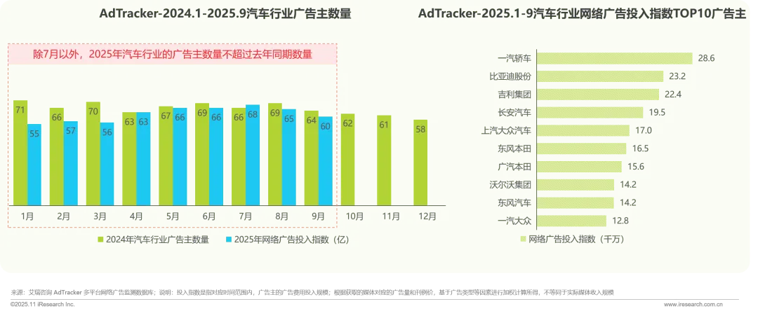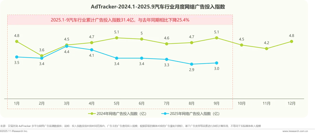 2025年汽车行业整体广告投入力度与去年同期相比有所下降