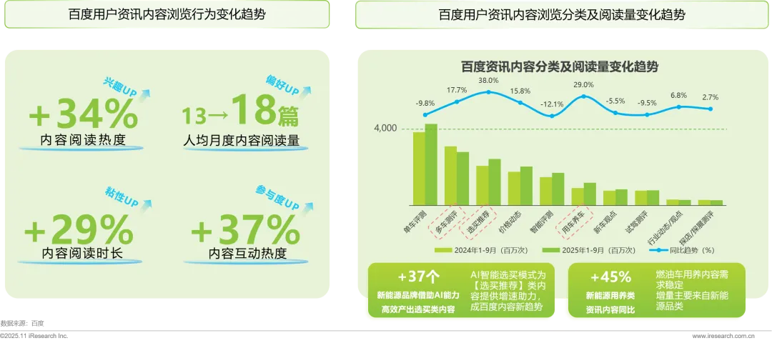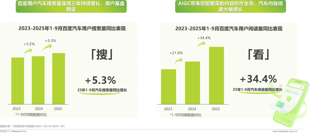 · 汽车搜索量微增,2025年流量同比稳增+5.3%,AI搜索带来全新的内容体验,用户阅读量同比增长34.4%