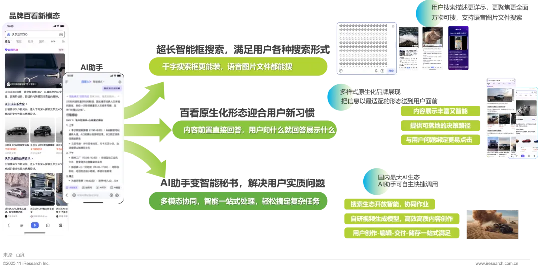 · AI内化搜索升级,2025年在百度生态全面AI重塑调整下,百度汽车进行了全面的AI能力击穿