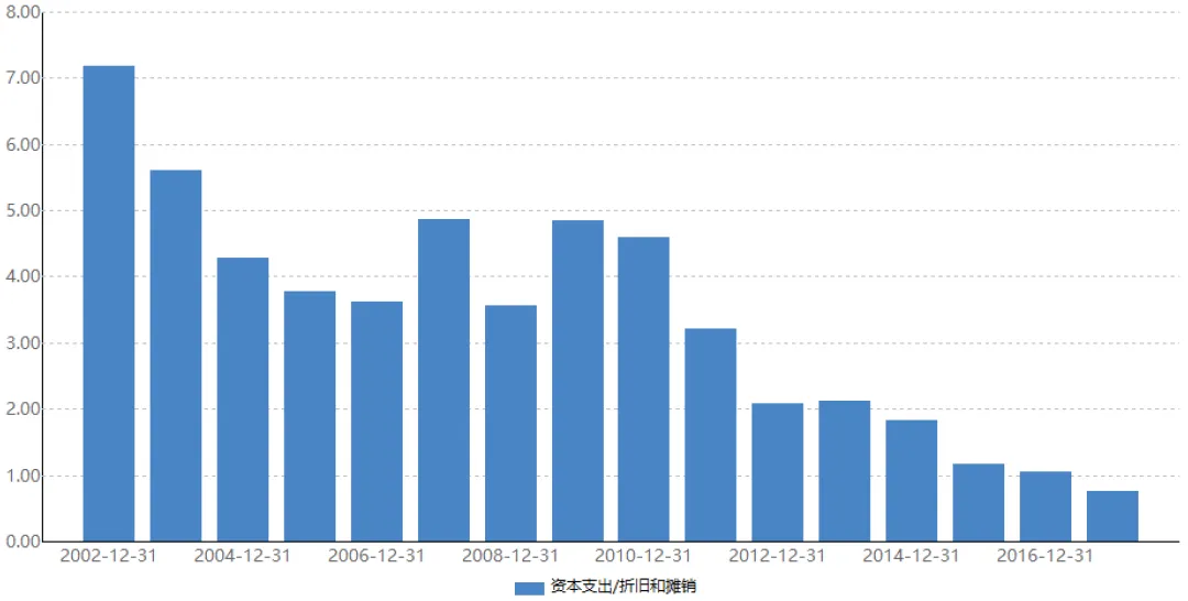 这类企业在成长初期基本上属于现金黑洞,持续的前期投资就像往这个黑洞不断地扔钱,对于这类成功的企业前期都是持续投资才获得了市场领导地位。但随着产业格局清晰以后,行业增长放缓,领导企业很难有机会利用新增投资来实现成长,因此,成长性的资本投资也就终止了,只保留了维持性资本的支出,维持性资本支出只是为了维持现状,这种形式的资本支出相当于经常经营性业务的资本支出,应该是相对可预测的。