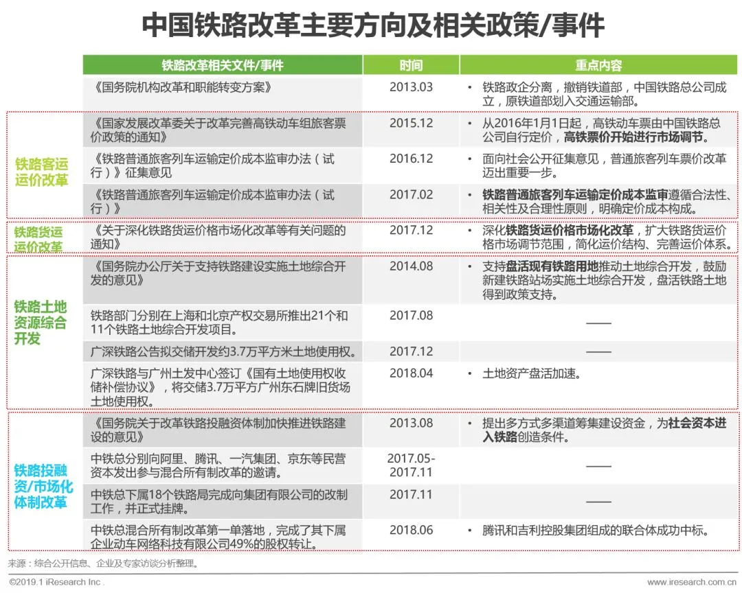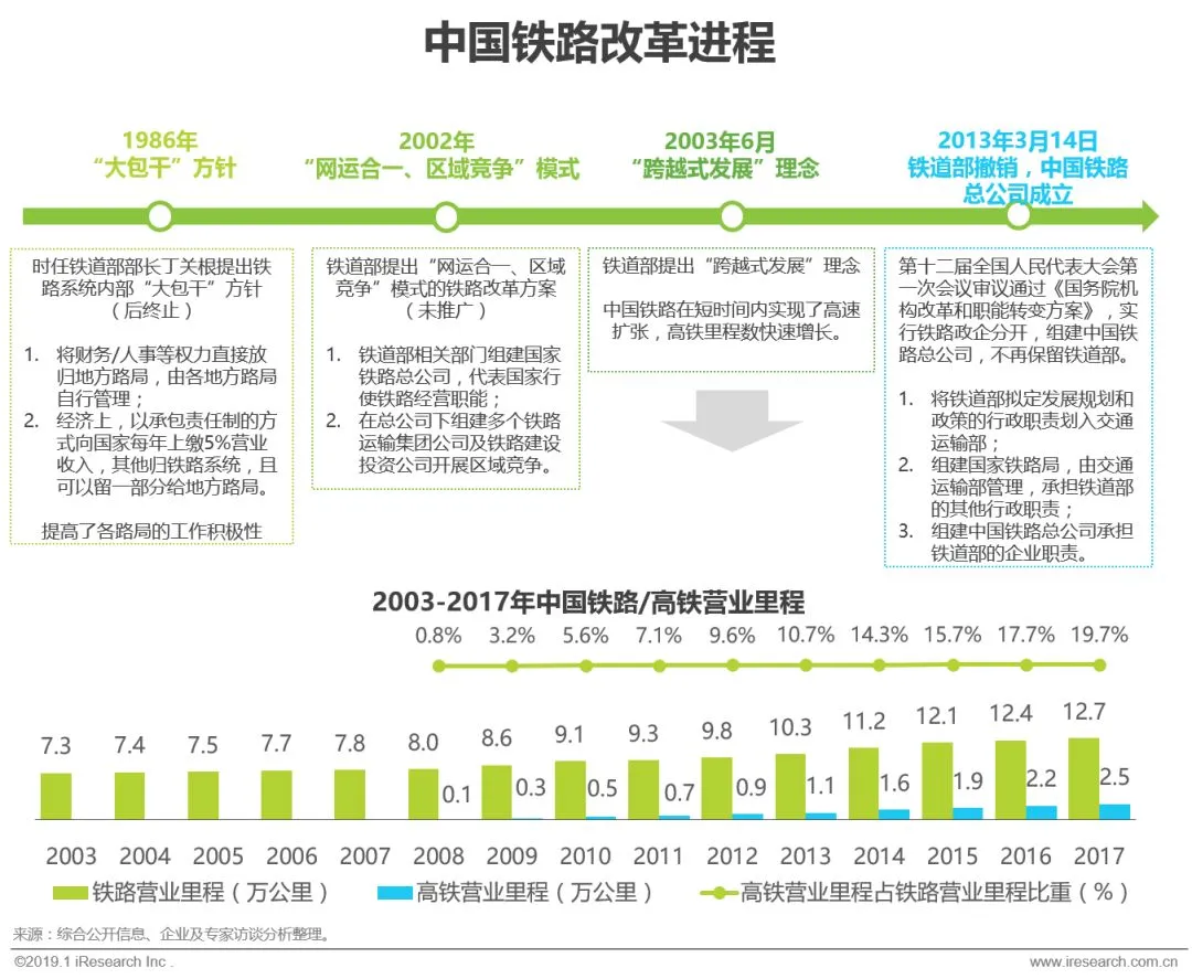 回顾中国铁路发展历程,曾在1986年、2000年前后和2003年有过三次较大力度的改革思路,最重要的改革历史则是在2013年,铁道部政企分开,中国铁路总公司成立。