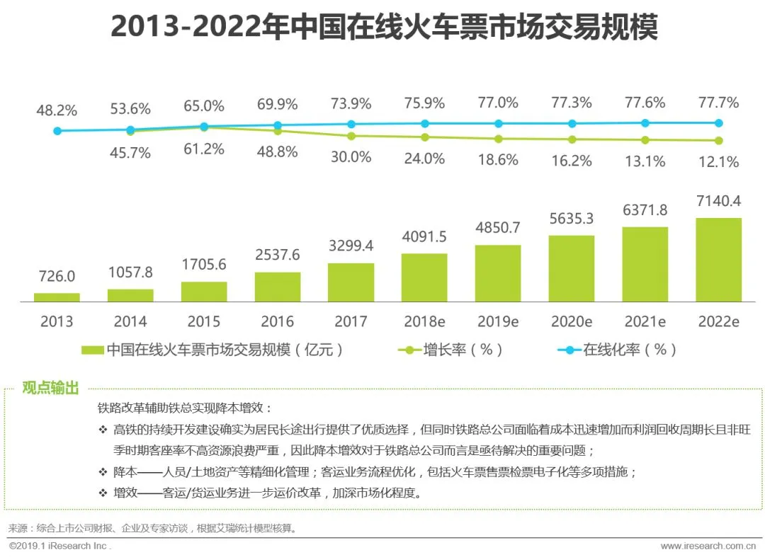 铁路出行量及在线交易比例的提升共同推进市场增长