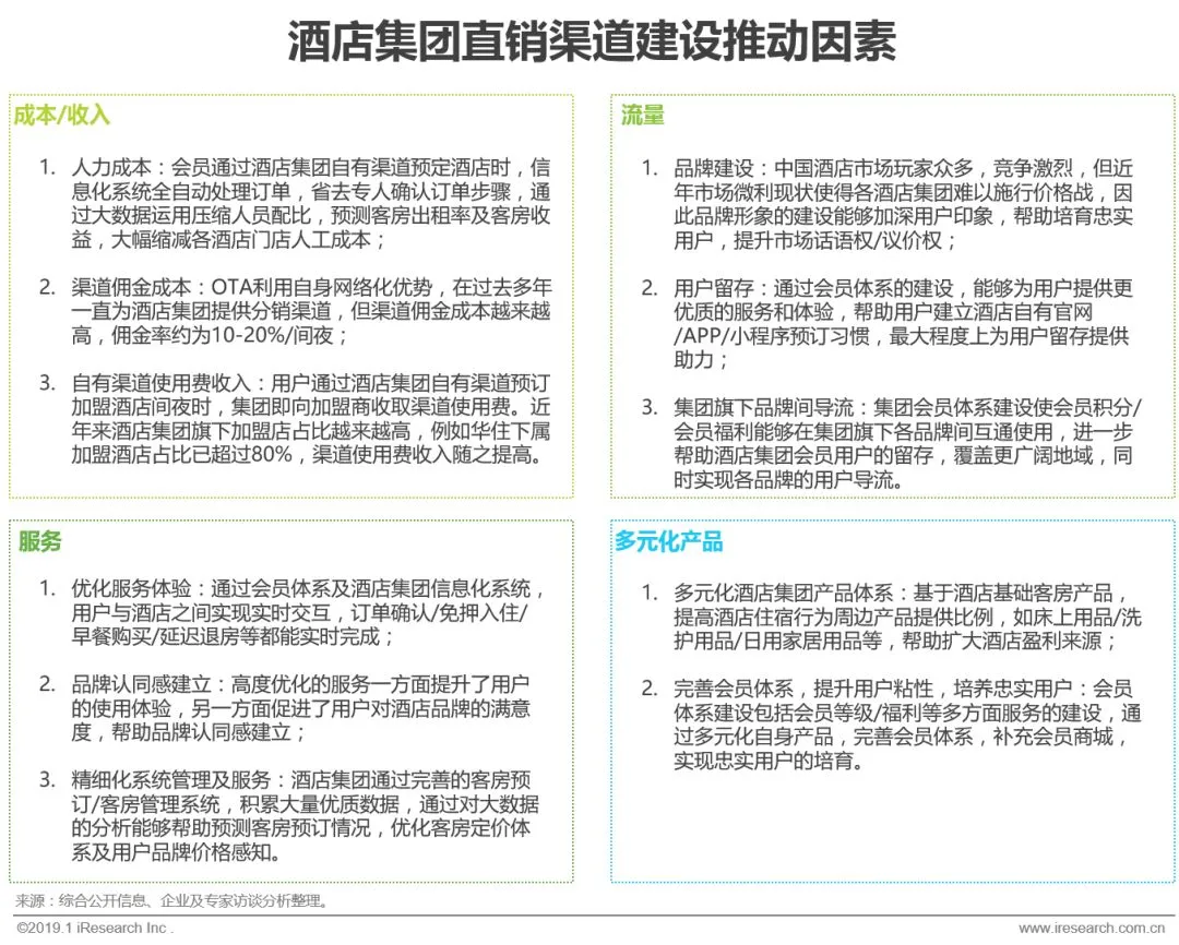 直销渠道建设是酒店集团在成本降低/服务优化等多因素考虑下的自主选择