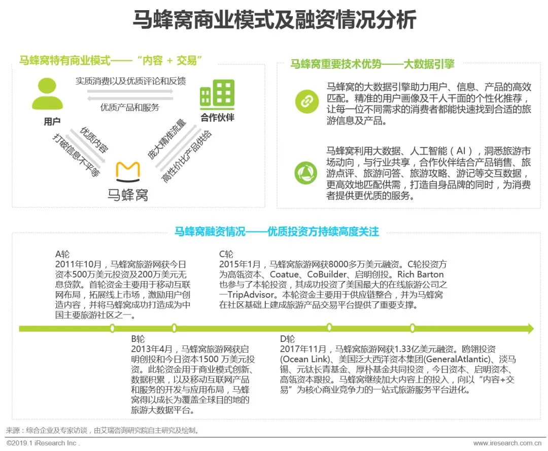 马蜂窝旅游网2010年开始公司化运营,是一个以旅行社区起家的旅游服务平台,基于对景点、餐饮、酒店等真实用户的游记、点评等信息的大数据分析,来帮助自由行用户制定旅行计划,提供旅游攻略、旅游消费决策、旅游产品预订等服务。优质旅游用户对社区内的旅游信息不断进行补充、完善、更新,马蜂窝大数据引擎则每时每刻都在“内容+交易”的系统内进行“新陈代谢”,因此,马蜂窝内容信息和交易产品所覆盖的目的地越来越广,服务能力也随之越来越强。