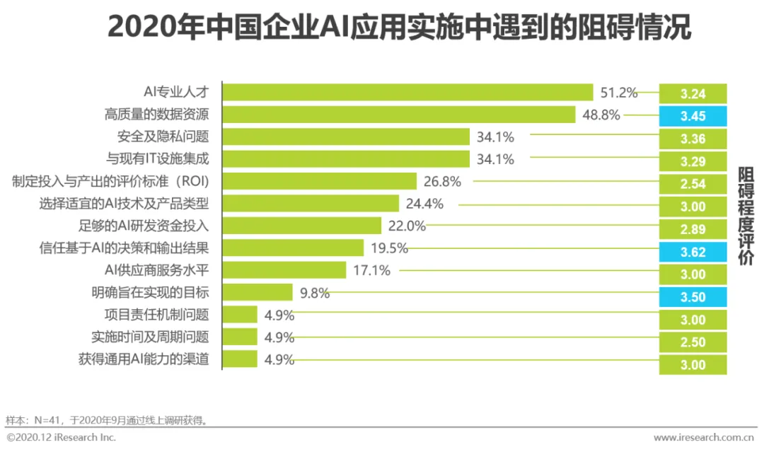中国企业AI应用调研:AI项目实施阻碍