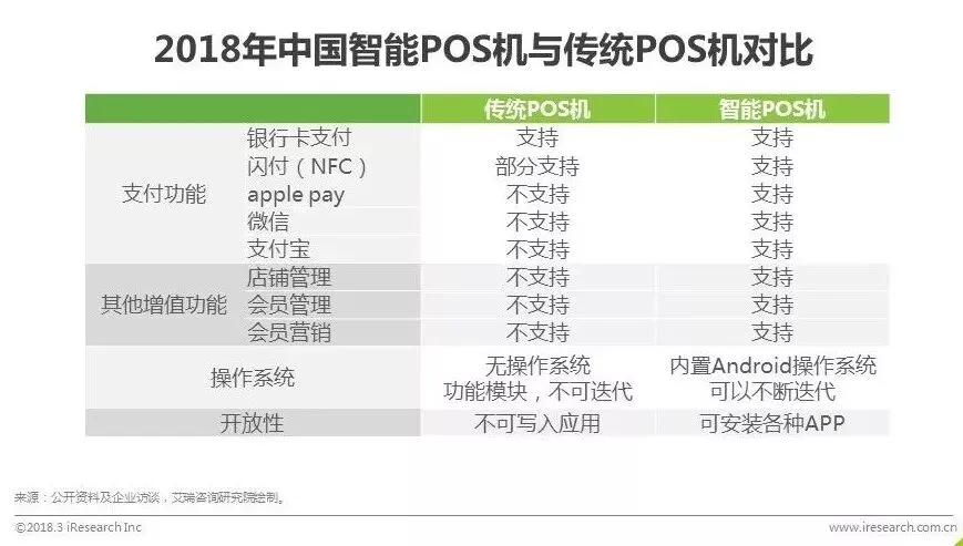 随着非现金收银突飞猛进发展,微信、支付宝、银行卡多渠道收单已成为主流趋势,如何快速融合收银并方便对账是餐饮商家的核心痛点之一。同时,商家在收银、营销和门店管理方面也提出了更高的要求,希望知道每天来的顾客是谁,有什么喜好,如何触达,收单行业处于重新定义价值的时期,传统POS机只提供单一的收单功能,智能POS机通过与收银系统结合,为餐厅用户数据与交易数据的分析奠定基础。不同于传统POS机仅支持银行卡刷卡等单一的付款方式,智能POS机聚合多种支付功能于一体,同时为商户提供店铺管理、会员管理、营销等多样化的增值服务。内置操作系统,可安装APP,商户可根据自己的需要扩充更多功能。