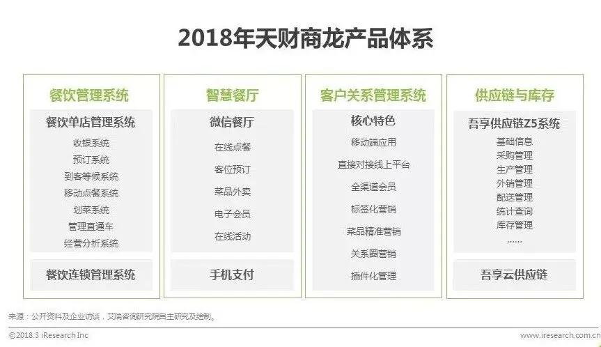 产品:目前天财商龙产品主要包括餐饮管理系统、智慧餐厅、客户关系管理系统、供应链与库存四大板块。