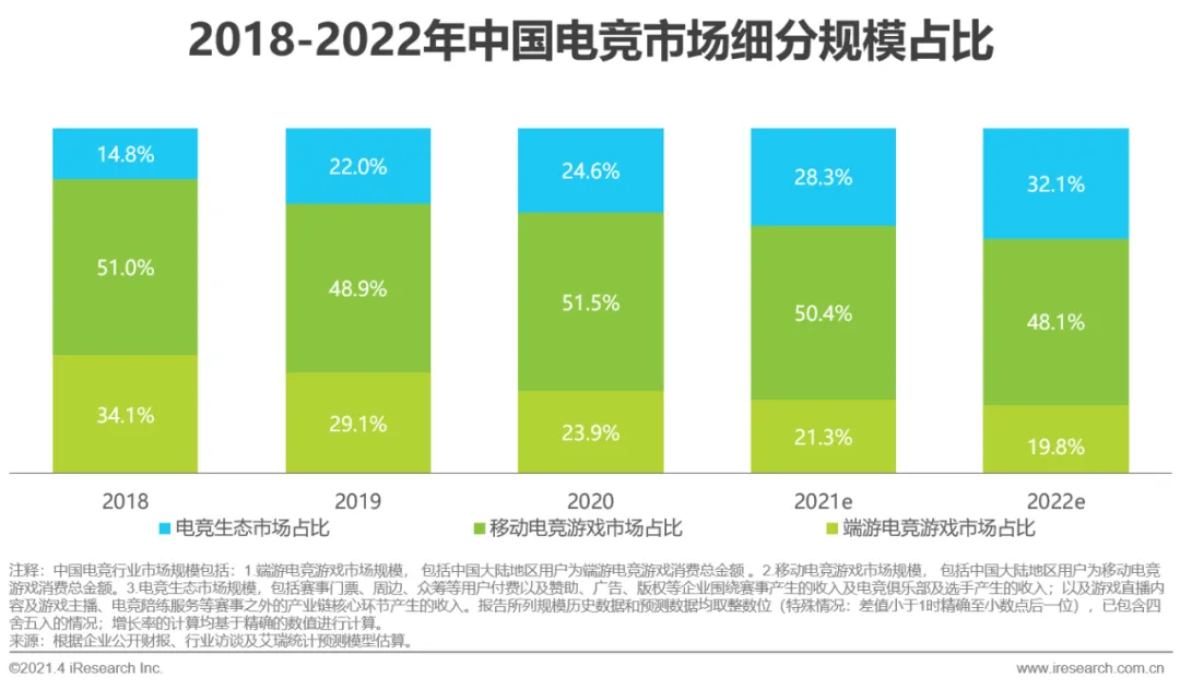 电竞商业化发展推动电竞生态市场占比提升