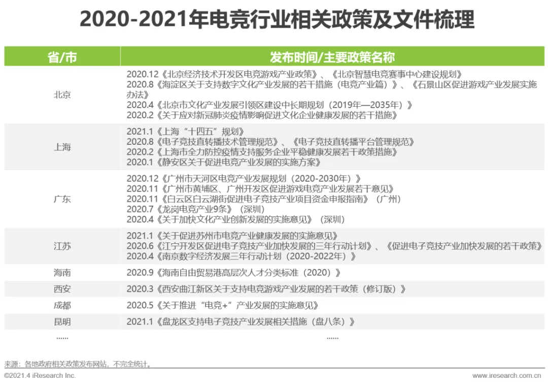 中国电竞行业扶持政策
