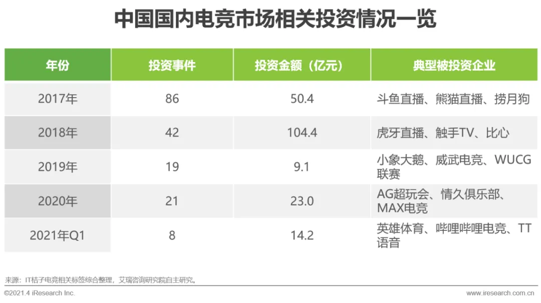 中国电竞市场相关投资情况