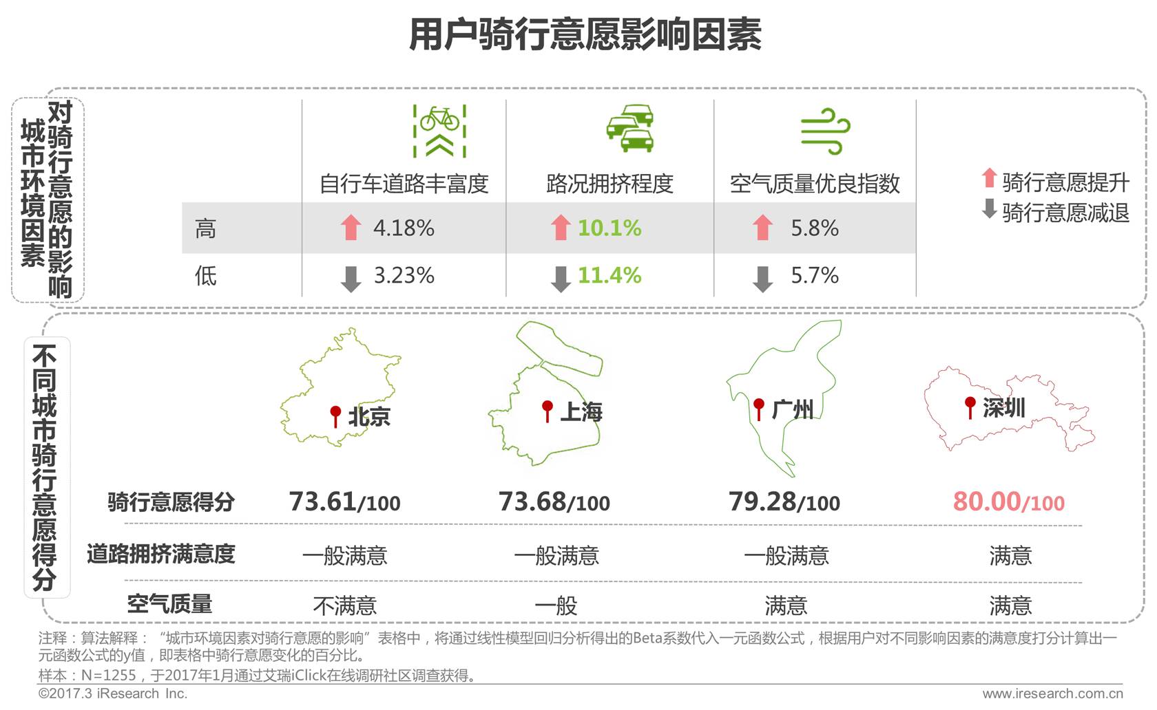 道路拥挤状况和空气质量是影响用户骑行意愿的主要因素