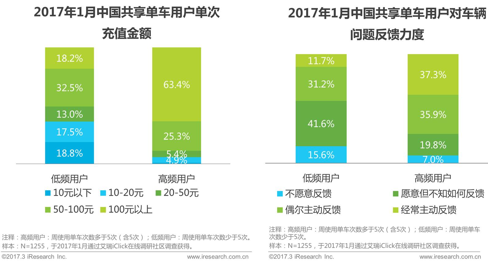 高频用户单次充值金额高,反馈车辆问题及不文明行为积极性高